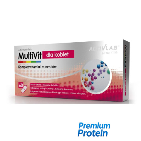 ActivLab Multivit for Woman 60 caps – це збалансований вітамінно-мінеральний комплекс, створений з урахуванням жіночих фізіологічних потреб. Формула об’єднує ключові вітаміни, мінерали, антиоксиданти та мікроелементи, які впливають на енергетичний обмін, гормональний баланс, красу шкіри, стан волосся і нігтів, роботу нервової системи та імунний захист.