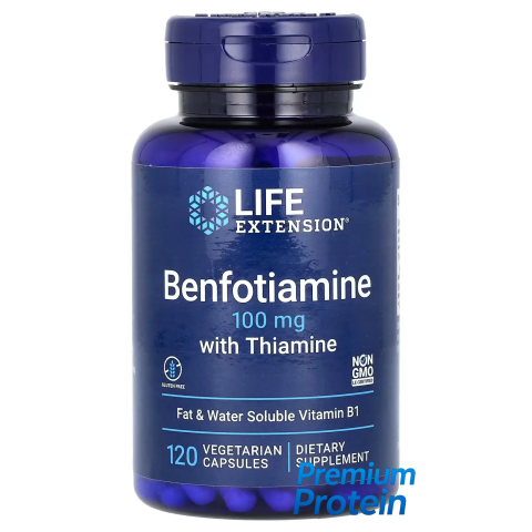 Вітамін B1 бере участь у перетворенні вуглеводів на енергію та відіграє важливу роль у функціонуванні нервової системи. Адекватний рівень тіаміну особливо критичний для мозку, клітини якого залежать від пентозофосфатного шляху для отримання енергії. Life Extension Benfotiamine + Thiamine також може підтримувати здоров'я ендотелію — внутрішньої вистілки кровоносних судин.
