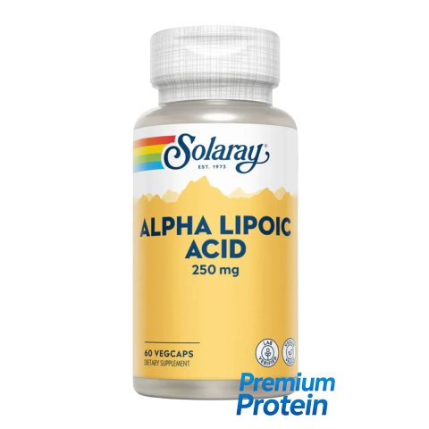 Solaray Alpha Lipoic Acid — це capsules у фасуванні 60 × 250 mg. Продукт позиціонується як дієтична добавка у веганському форматі (VegCap) та випускається брендом Solaray з комунікацією «Живіть яскравіше — з 1973 року».