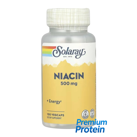Solaray Niacin — це вітамін B3 (нікотинова кислота) у високій дозі 500 мг на капсулу, що сприяє нормалізації метаболізму, покращенню кровообігу та підтримці шкіри. Продукт пройшов лабораторну перевірку на чистоту та потужність.